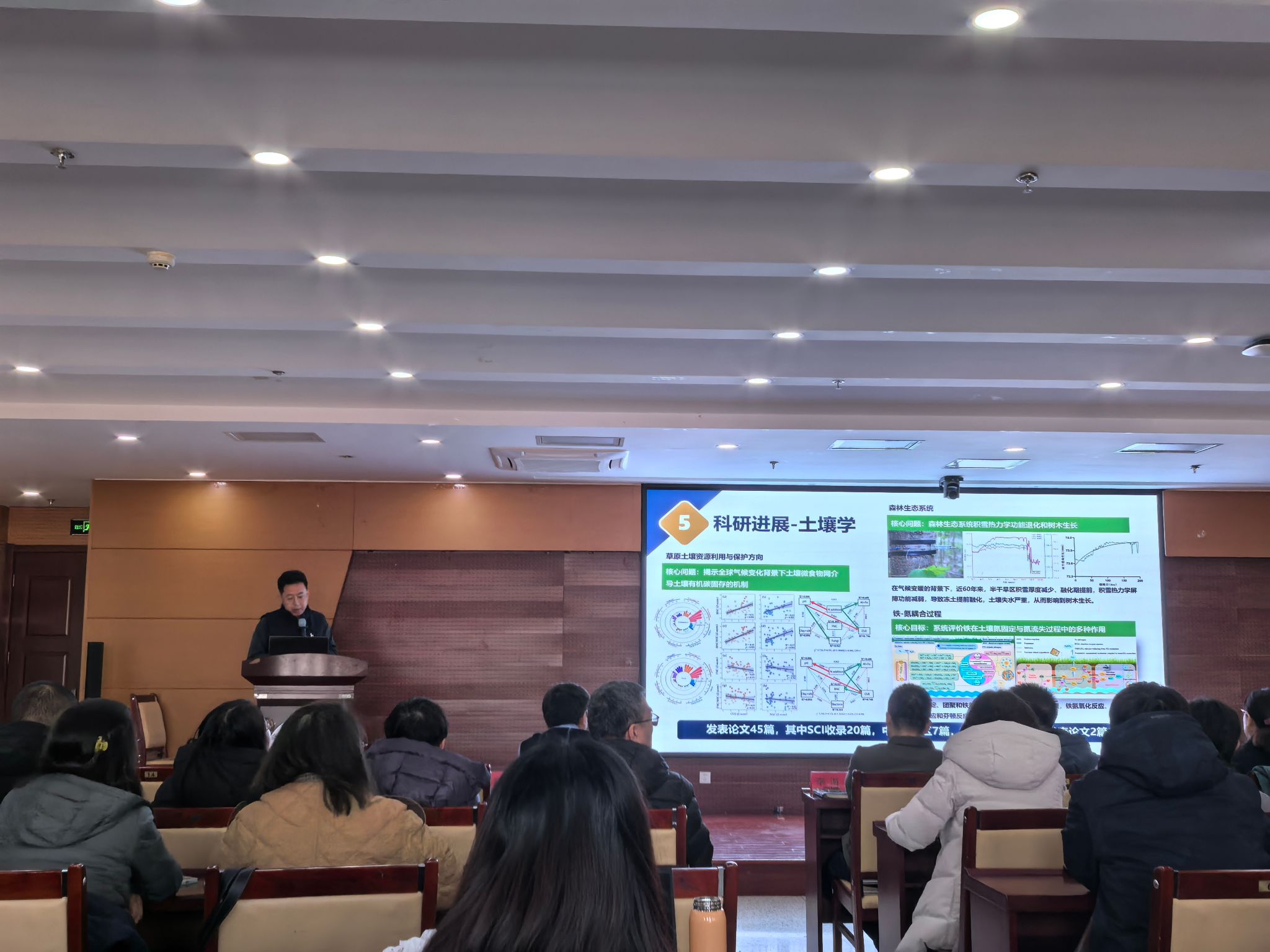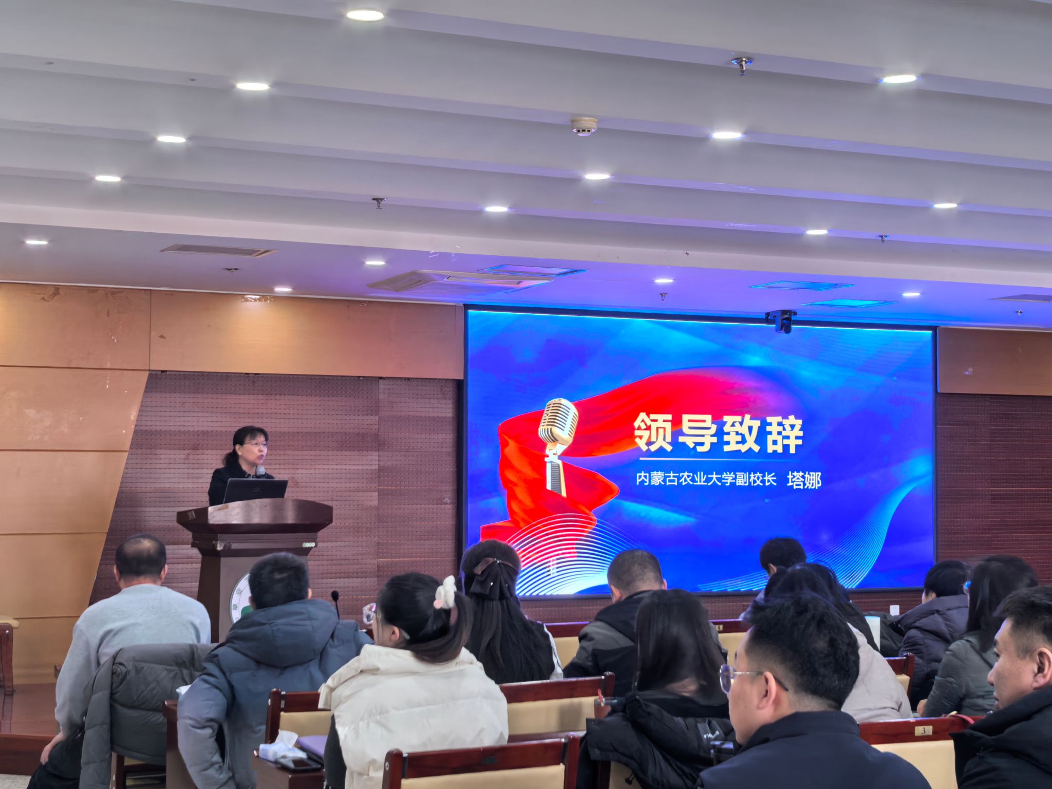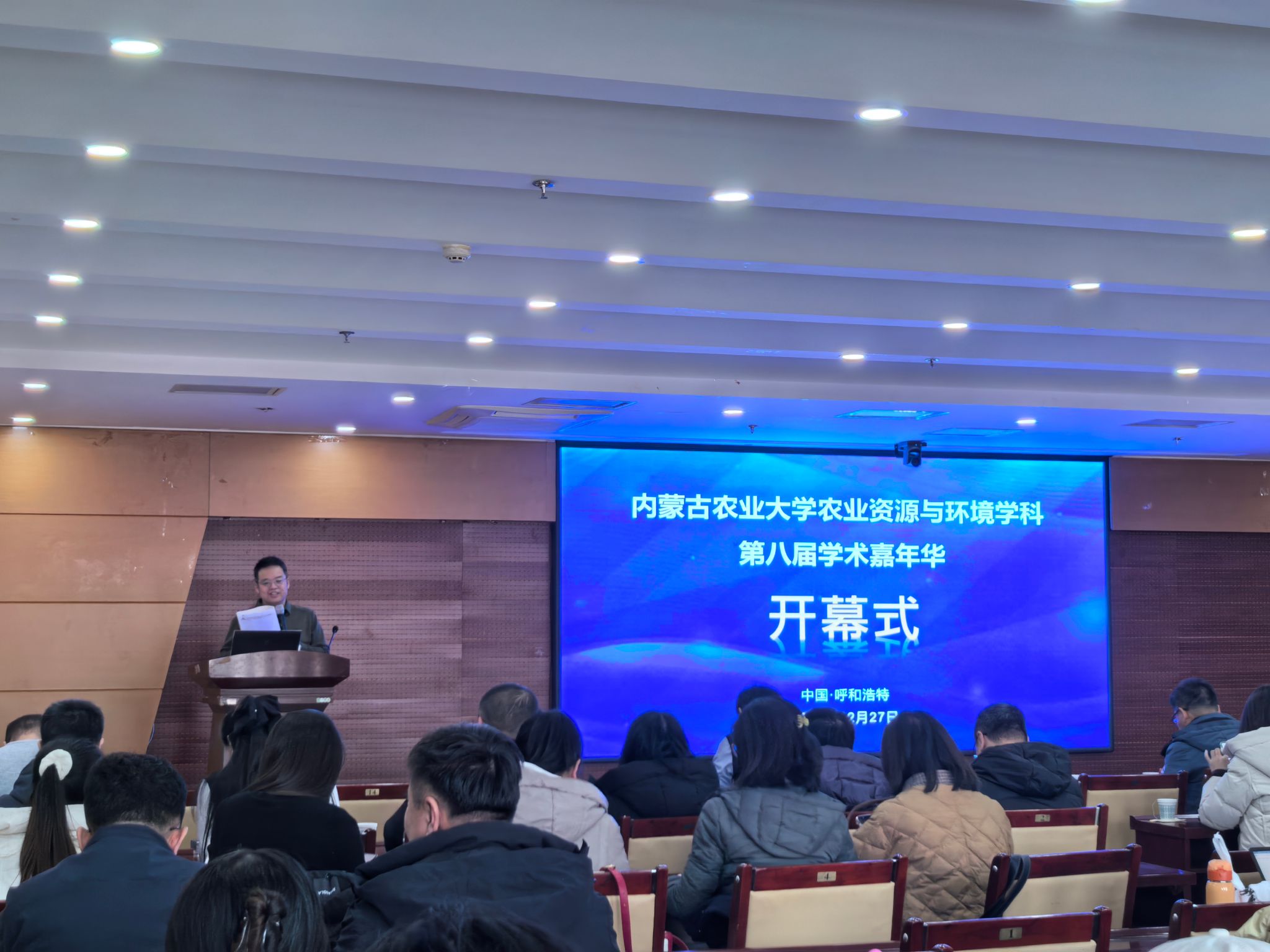 会议开幕式由资源与环境学院院长李海港教授主持,内蒙古农业大学副校长塔娜教授出席会议并致辞,农业资源与环境学科助理叶贺作了2025年学科发展报告,特邀嘉宾中国农业大学赵之淦教授、内蒙古大学吕昌伟教授、内蒙古农业大学李国婧教授分别做了《全球变化下小麦生产格局》、《环境污染物的多界面过程与效应》以及《合成生物学是未来》的专题报告。
