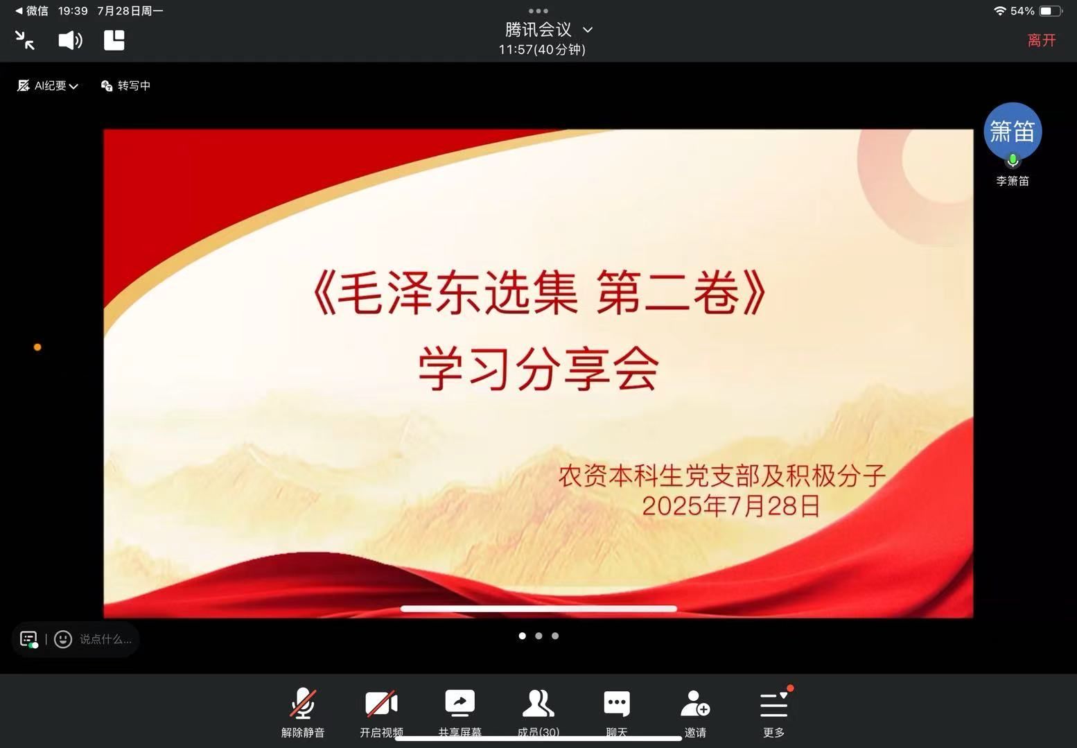 同时,党支部组织线上《毛泽东选集》系列学习分享会,从7月21日至8月11日,围绕四卷内容展开研讨。同学们结合专业与农业实际,分析群众路线、持久战理论等对农业发展和专业学习的指导意义,批判形式主义、主观主义,提出贴合农民需求的技术推广策略等。老师对研讨予以肯定,并对后续学习提出期望。