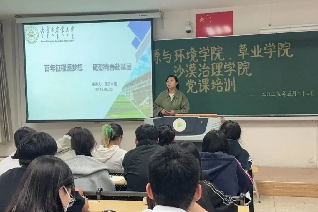 为教育引导发展对象端正入党动机、坚定理想信念,资源与环境学院、草业学院和沙漠治理学院于5月22日晚19:00在南教A座205教室开展发展对象第五次党课培训。本次党课由资源与环境学院学办副主任其乐木格老师担任主讲人。