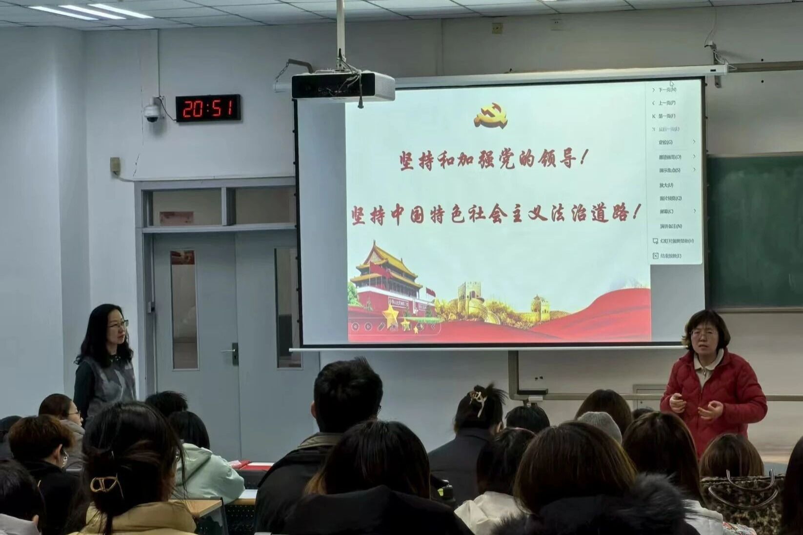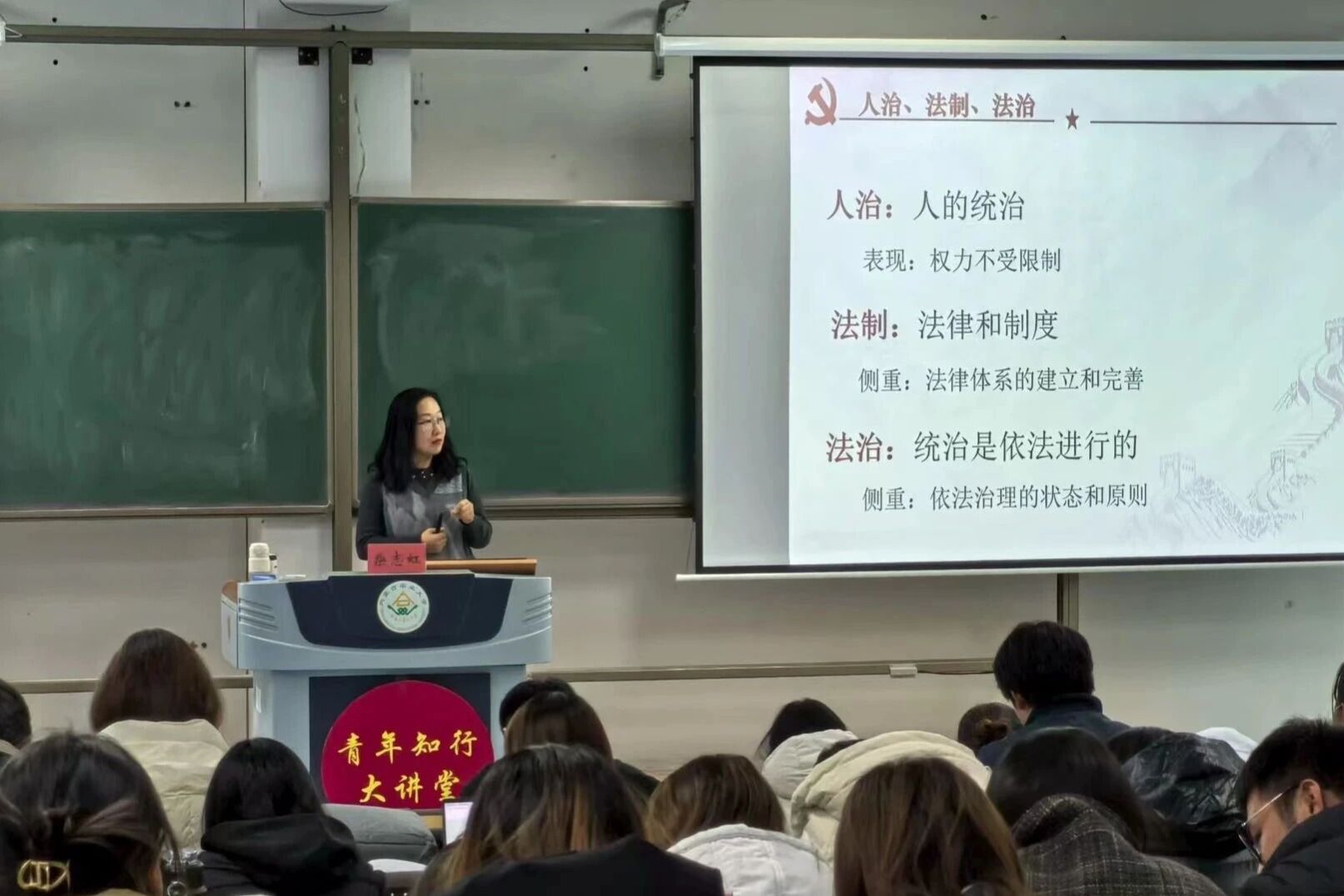 11月21日晚资源与环境学院和草业学院于南教A座116教室开展2025年第二期发展对象第三次党课。本次党课以“筑牢法治根基,坚定中国特色社会主义法治道路”为主题,由校法治工作办公室副主任柴志虹主讲。