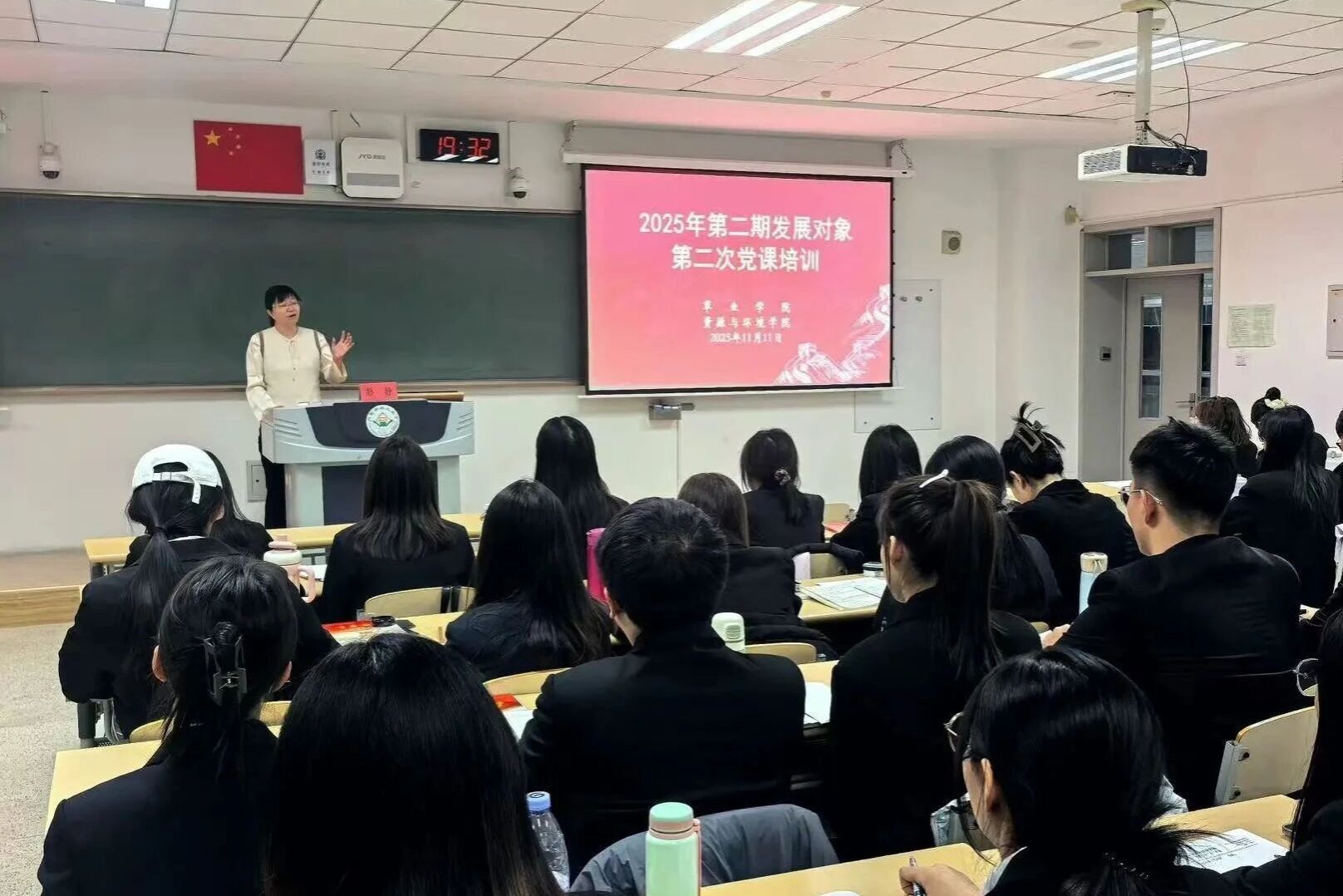资源与环境学院联合草业学院于11月11日晚在南教A座226教室进行了2025年第二期发展对象第二次党课,本次党课以“铸牢中华民族共同体意识,高质量普及通用语言文字”为主题,由沙漠学院党委书记彭静主讲。