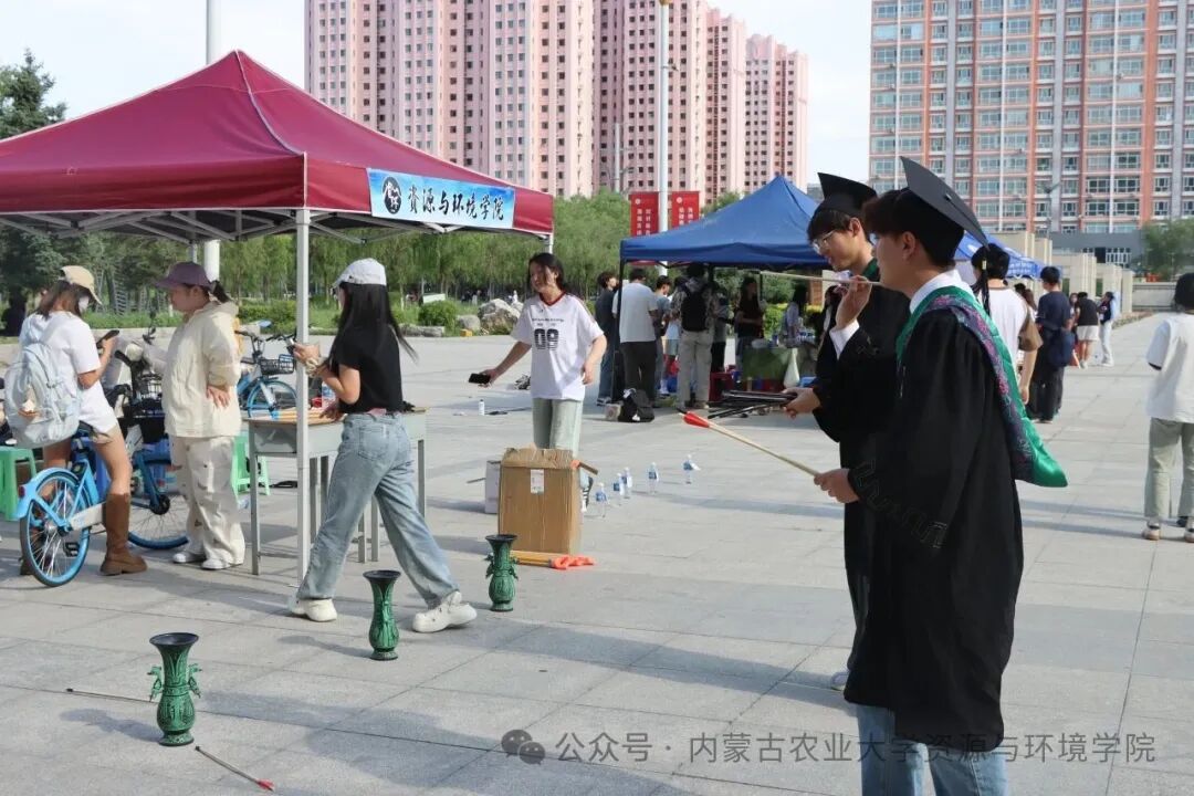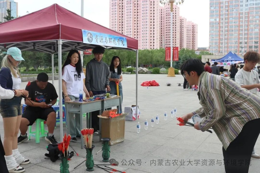 色彩鲜艳的宣传海报和横幅营造出热烈的活动氛围,我院准备了投壶和扔沙包两项游戏,并为赢得游戏的同学准备了丰厚的奖品。投壶区域,摆放着古朴的壶具,吸引了不少同学驻足尝试。投壶是我国古代一项兼具礼仪教化与娱乐性的投掷游戏,在此次游园会上,它摇身一变成为同学们释放压力、锻炼专注力的热门项目。参与者手持箭矢,屏气凝神,瞄准壶口奋力投掷。每当箭矢准确投入壶中,现场便会爆发出一阵热烈的欢呼与掌声,成功的喜悦洋溢在每个人的脸上;而未能投中的同学也并不气馁,笑着捡起箭矢,继续挑战,在一次次尝试中感受着游戏的乐趣。扔沙包区域同样人气爆棚,那里摆放着标有不同情绪词的水瓶,同学们站在指定位置,手握沙包,眼神专注地锁定目标,然后用力将沙包扔出。那一刻,仿佛所有压力和不良情绪都烟消云散了。扔沙包不仅考验着同学们的力量和准度,更在无形中拉近了彼此之间的距离。