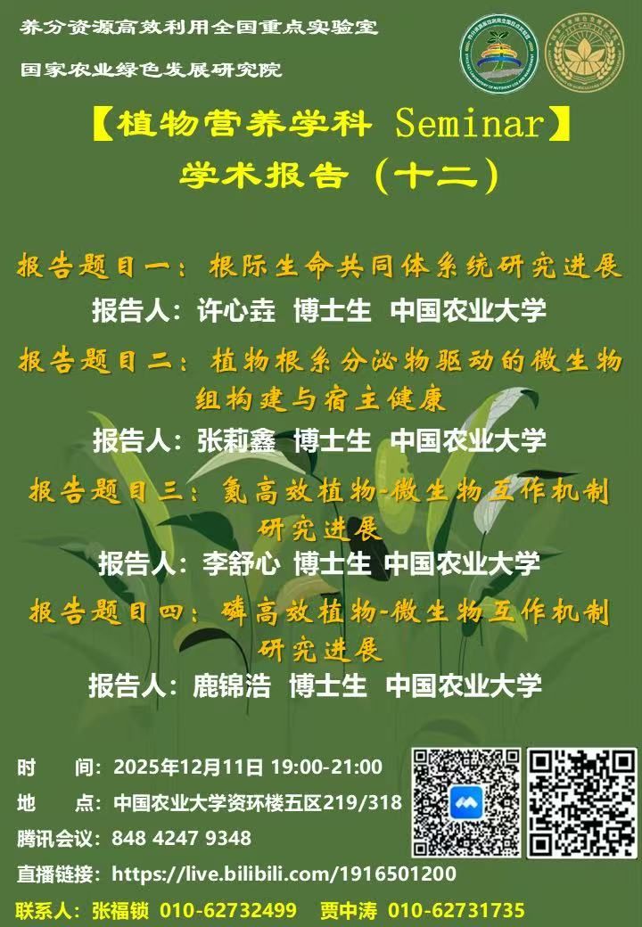 报告题目二:植物根系分泌物驱动的微生物组构建与宿主健康 报告人:张莉鑫 博士生 中国农业大学
